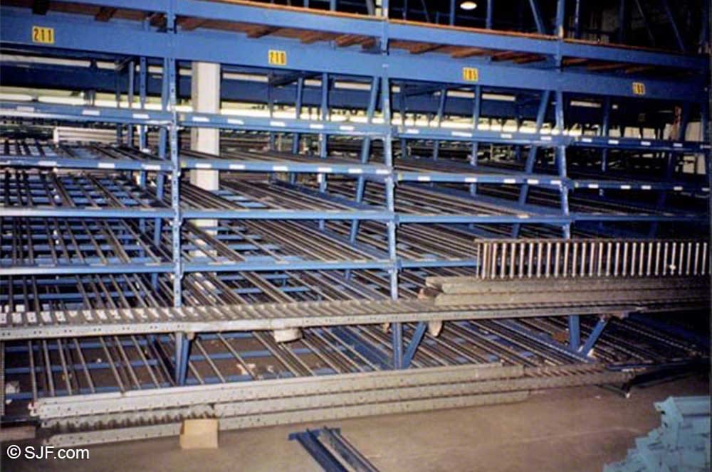 SJF has refurbished carton flow rack and gravity flow rack systems for companies both nationwide and abroad. As you can see in the photo above, SJF's refurbished carton flow racks look and work like new but for a price that is considerably less. SJF currently stocks over 5,000 sections of name-brand carton flow racks, gravity flow rack and case flow racks for you to choose from.